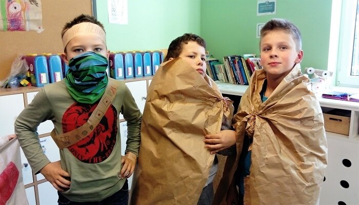 My też spróbujemy wejść w rolę oraz w kostiumy teatralne, które sami stworzymy wykorzystując m.in. papier, folie i sznurek. Będzie to też okazja, by przyjrzeć się jak zmieniały się teatralne strojne na przestrzeni różnych epok i z czym było to powiązane.